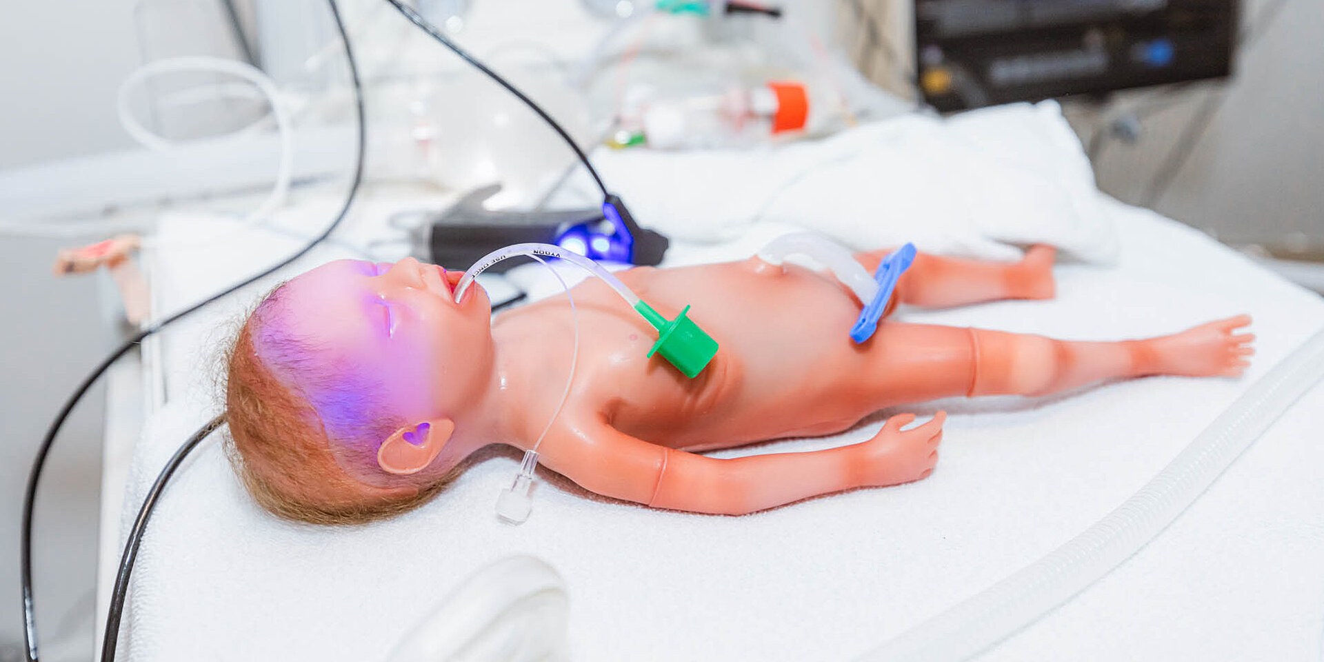 Trainiert wird jedoch zusammen, oder „multiprofessionell“, wie Martin Jessie es nennt. Der Neonatologe leitet das Simulationszentrum des Bürgerhospitals und Clementine Kinderhospitals. Hier sollen Beschäftigte aus Medizin und Pflege zusammen so realitätsnah wie möglich Hochrisikosituationen trainieren. Im Falle der geschilderten Notfallsituation geschah das Training mithilfe einer Schauspielerin. Aber es stehen auch Patientenpuppen zur Verfügung, die in den Simulationen zum Einsatz kommen – etwa die Simulationspuppe „Paul“, die einem Frühgeborenen nachempfunden ist.