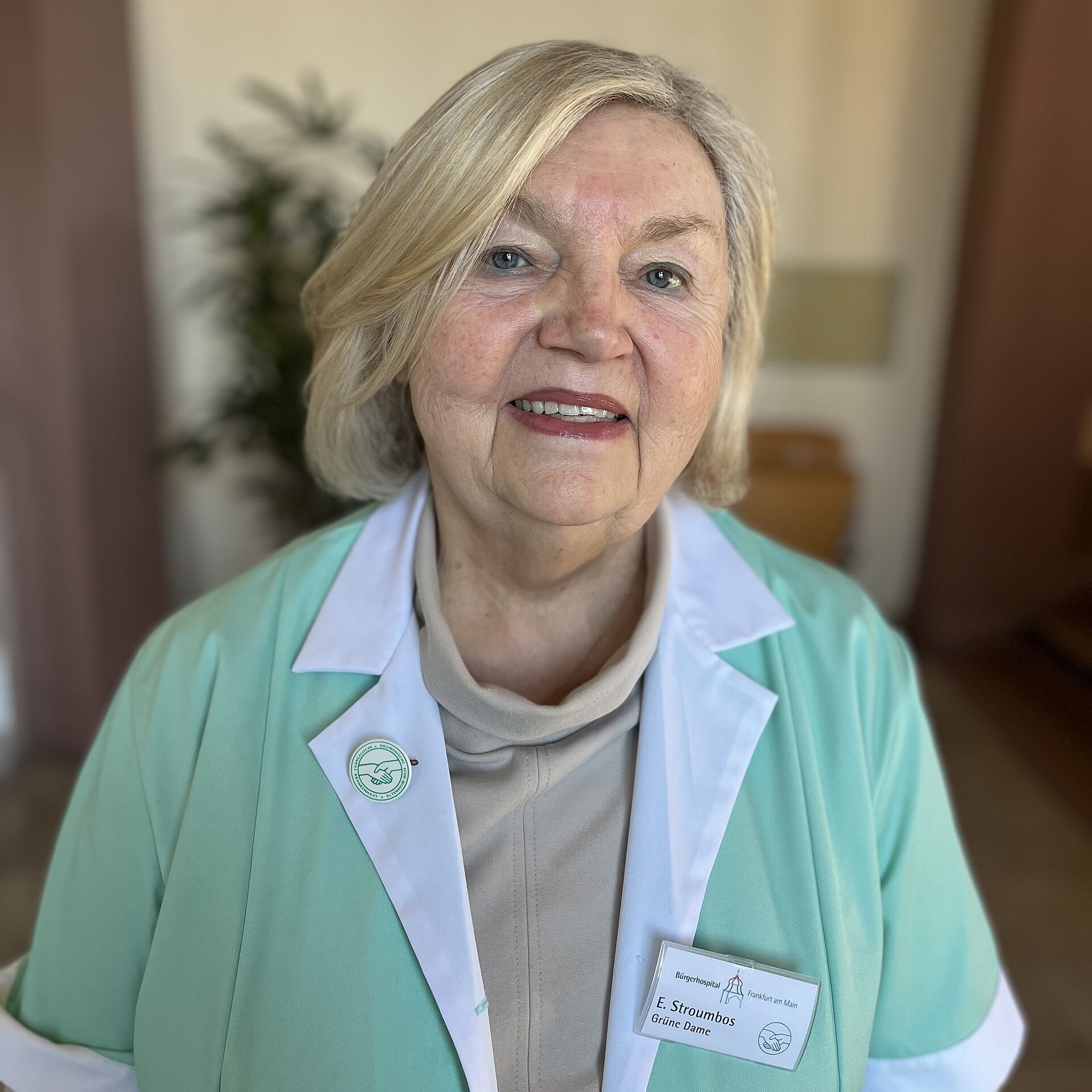 Am Bürgerhospital Frankfurt sind die Grünen Damen und Herren schon seit mehr als 30 Jahren im Einsatz. Man erkennt sie an den grünen Kitteln, von denen sich auch ihr Name ableitet. Statt im Ruhestand die Hände in den Schoß zu legen, stellen sie sich der anspruchsvollen Aufgabe einer ehrenamtlichen Tätigkeit, die Menschenkenntnis und Mitgefühl erfordert und die sie mit großer Freude und Herzlichkeit ausführen.