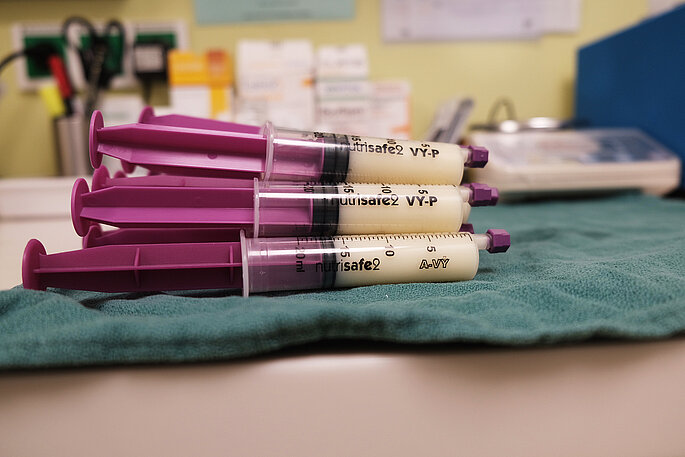 „Sobald die Tests bestätigen, dass alles sicher verwendet werden kann, erhalte ich die Freigabe und kann sie wieder abrufen. Wenn die Milchflaschen wieder bei uns eintreffen, werden sie aufgetaut und in sorgfältig kontrollierten Mengen an die Frühgeborenen gegeben. Vom Abpumpen bis zur Fütterung dürfen nicht mehr als sechs Monate vergehen“, beschreibt Corina Uhl den Ablauf.
