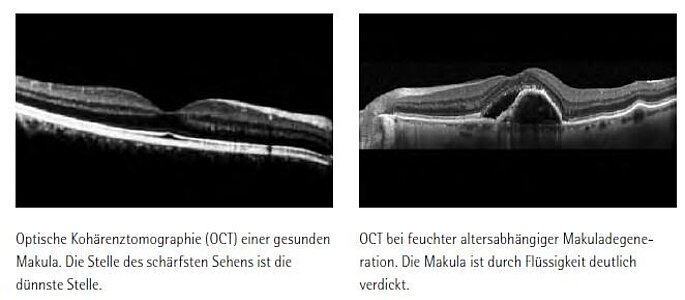 Bei zahlreichen Augenerkrankungen kommt es zu einer Ansammlung von Flüssigkeit oder Blut an der Stelle des schärfsten Sehens im Zentrum der Netzhaut, der sogenannten Makula. Erkrankungen wie die feuchte Form der altersabhängigen Makuladegeneration (AMD) bzw. ein Makulaödem durch einen Venenverschluss oder durch den Diabetes mellitus sind nur einige Beispiele hierfür. Sie können zu einer erheblichen Sehverschlechterung und im fortgeschrittenen Stadium zur Erblindung des Auges führen.