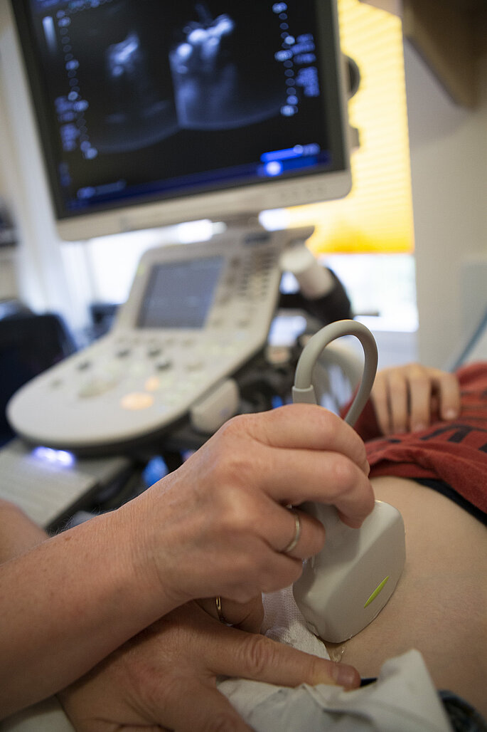 Beim Wasserlassen misst dann eine mit einem Uroflow Gerät präparierte Toilette den Urinstrahl. In der Auswertung kann Annette Klöpper ablesen, wie lange die Blasenentleerung dauert, ob die Blase mit Unterbrechungen entleert wird und wie viel Druck der Harnstrahl aufweist. All das sind wichtige Parameter bei der Einordnung des Problems. Außerdem wird nach jedem Toilettengang die Blase mit Ultraschall untersucht, um zu sehen, wie viel Restharn darin enthalten ist.