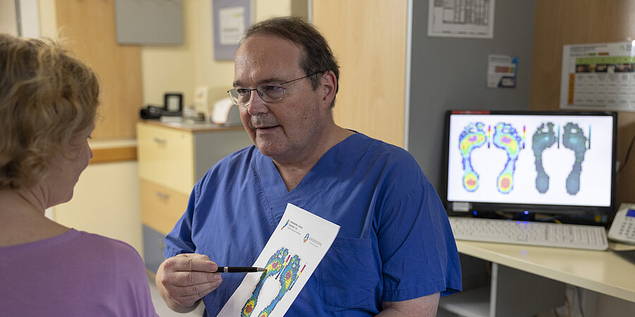 Darüber hinaus legt unser multidisziplinäres Team einen großen Schwerpunkt auf die Vermeidung und Behandlung diabetesbedingter Folgeerkrankungen, insbesondere das Diabetische Fußsyndrom, dessen DDG-zertifizierte Behandlung eine unserer Kernkompetenzen darstellt.
